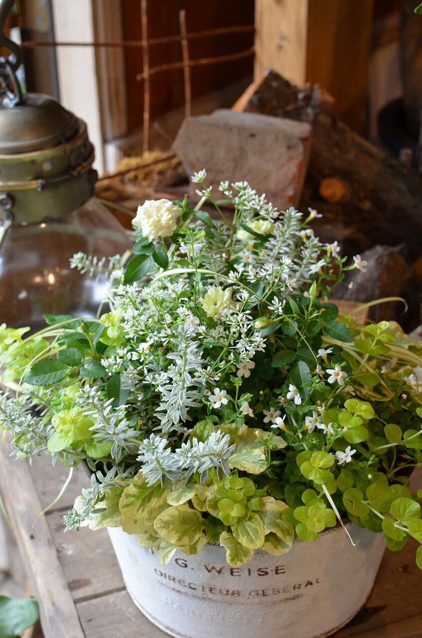 【寄せ植え】ホワイト&グリーンのナチュラルな寄せ植え