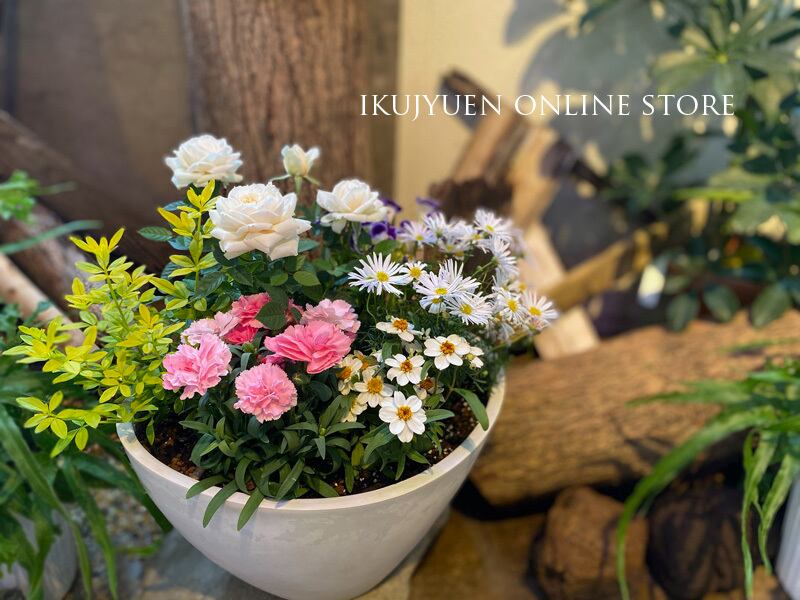 【寄せ植え】白花と桃色カーネーションの母の日寄せ植え